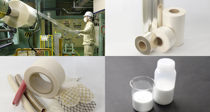 具体的には、食品包装用フィルム、電子材料・医療用の機能性フィルム、ロースハムやソーセージの製造に用いられるチューブ状の成形紙(ケーシング)などを製造しています。