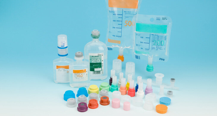 医療製品分野では、輸液用のバッグフィルムやキャップ、薬品保管用ケースなど、用途に応じた軽量かつ堅牢なプラスチック製品を製造しています。